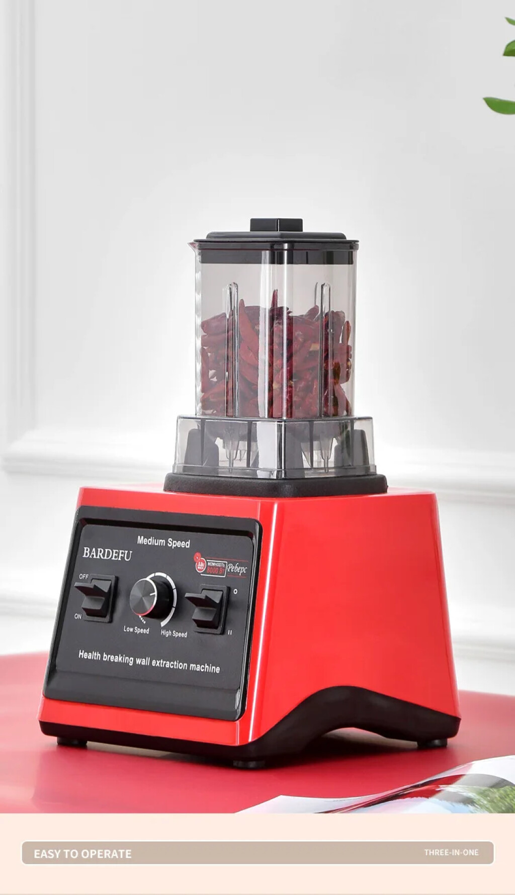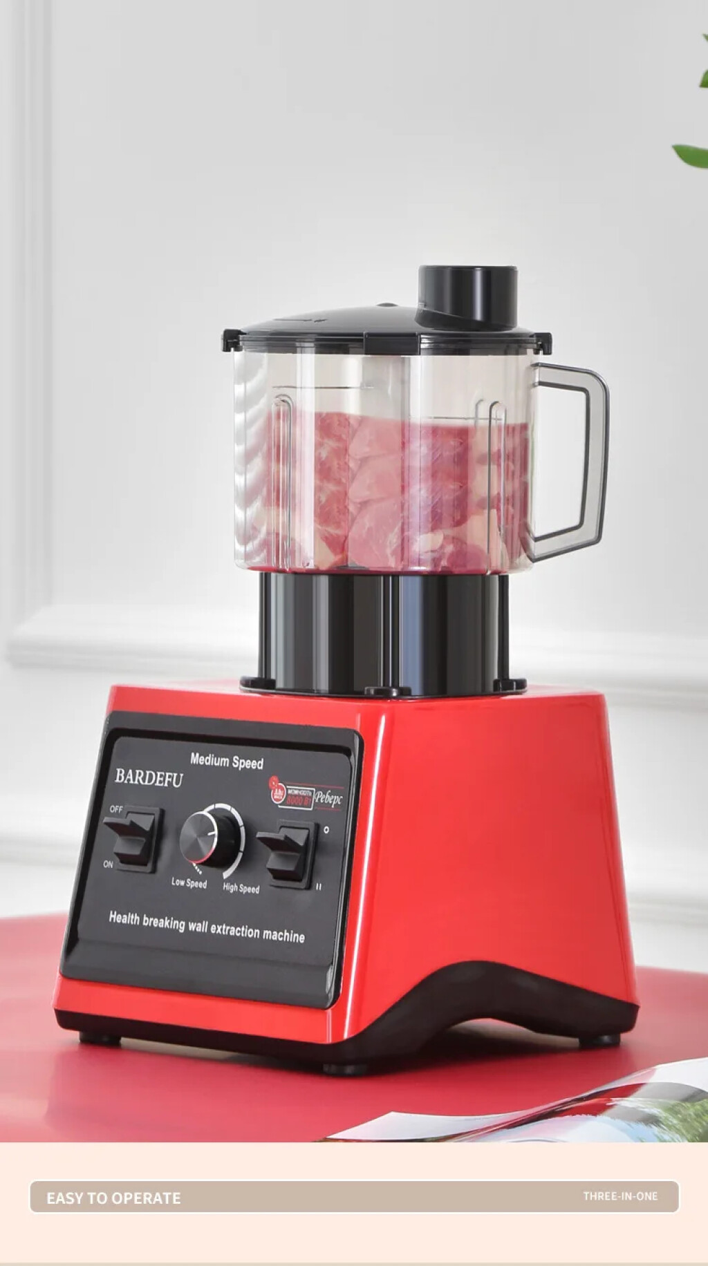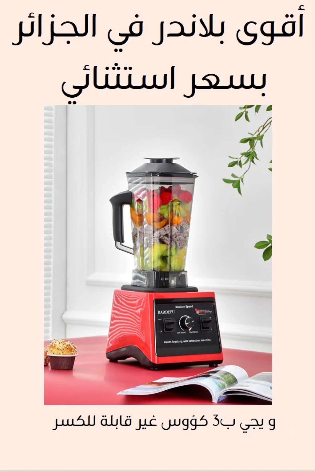 بلندر 3 في 1 بقوة عالية وجودة ممتازة لكل استعمالات المطبخ. 🔹 3 كؤوس غير قابلة للكسر: • الكأس الكبير 3 لتر للعصائر والخلط • وعاء خاص لفرم اللحوم • الكأس الصغير للمكسرات والبهارات ⚡ قوة محرك 7500 واط 🛡️ ضمان 12 شهر